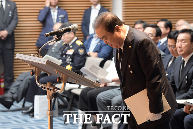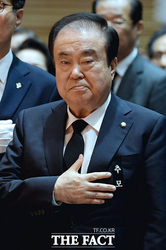 [더팩트|이선화 기자] 문희상 국회의장이 26일 오전 서울 용산구 백범김구기념관 대회의실에서 열린 '백범 김구 선생 제70주기 추모식'에 참석해 헌화를 하고 있다.