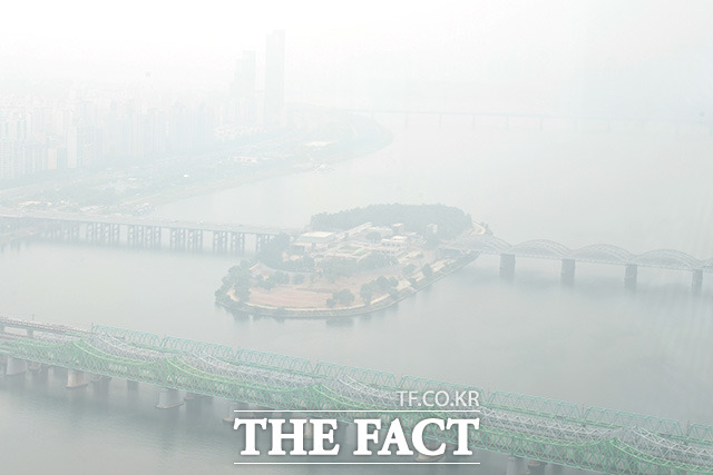 [더팩트ㅣ남용희 기자] 안개가 짙으며 초미세먼지 농도가 '나쁨' 수준인 15일 오전 서울 여의도 63스퀘어 전망대에서 바라본 여의도 일대가 희뿌연 모습을 보이고 있다.