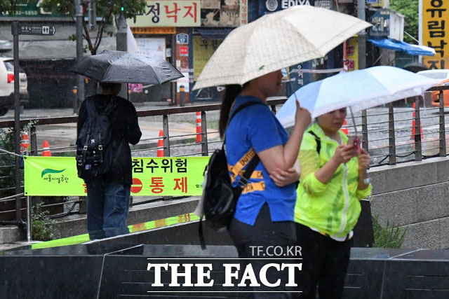 [더팩트 | 남윤호 기자] 장마전선의 영향으로 서울에 올해 처음 호우경보가 발효된 26일 오전 서울 종로구 청계광장 청계천 산책로 출입이 통제되고 있다.