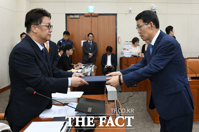 [더팩트 | 국회=남윤호 기자] 은성수 금융위원장 후보자가 29일 오전 서울 여의도 국회에서 열린 인사청문회에 출석해 질의에 답변하고 있다.