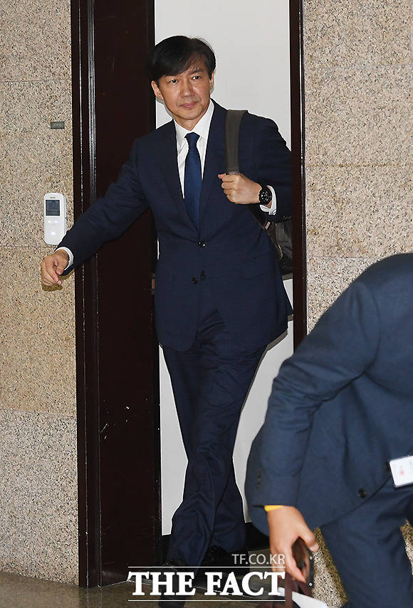 조국 법무부 장관 후보자가 2일 오후 서울 여의도 국회를 찾아 기자간담회를 앞둔 가운데 정책위의장실을 나서고 있다. /국회=이새롬 기자