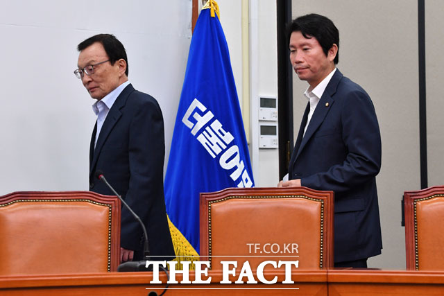 [더팩트 | 국회=남윤호 기자] 이해찬 더불어민주당 대표(오른쪽)와 박주민 최고위원이 9일 오전 서울 여의도 국회에서 열린 최고위원회의에 참석해 휴대전화를 바라보고 있다.