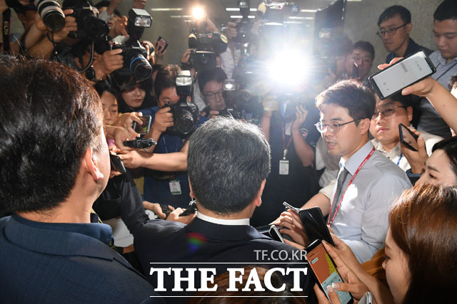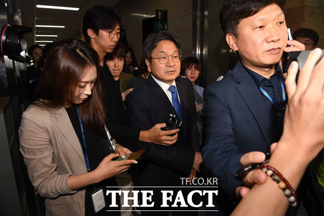 [더팩트 | 국회=남윤호 기자] 강기정 청와대 정무수석이 9일 오전 서울 여의도 국회 이해찬 더불어민주당 대표실을 찾아 회동을 마친 뒤 국회를 나서고 있다.