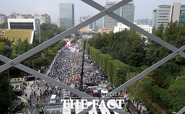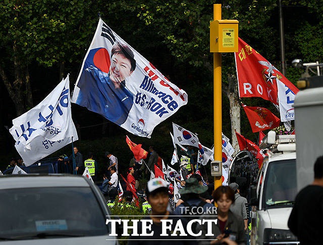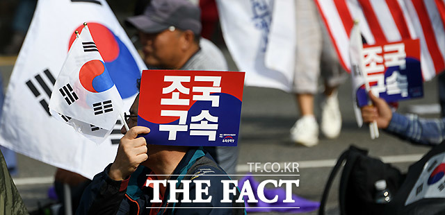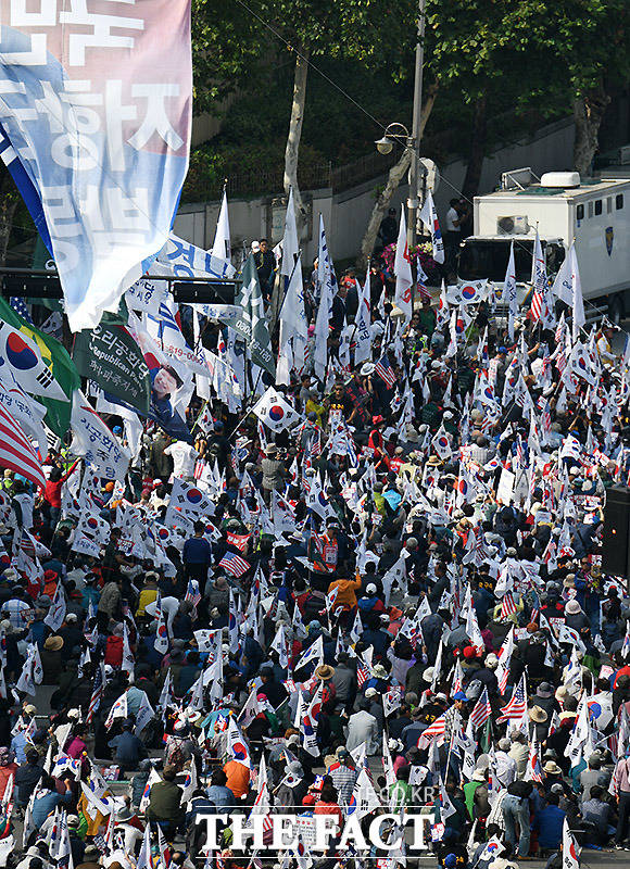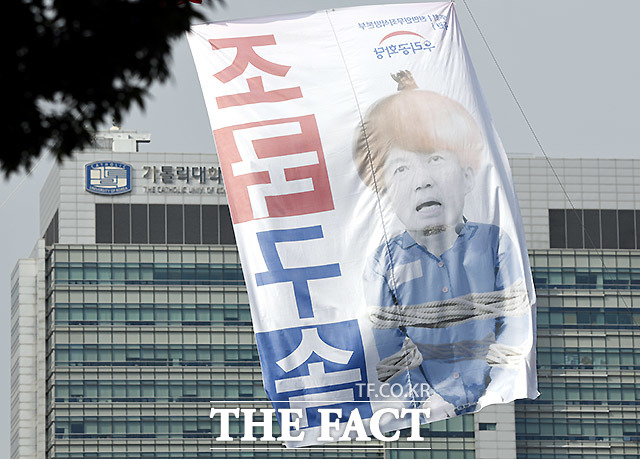 [더팩트ㅣ이효균 기자] 우리공화당이 5일 오후 서울 서초동 서울성모병원 일대에서 조국 법무부 장관을 규탄하는 148차 태극기 집회을 열고 있다.