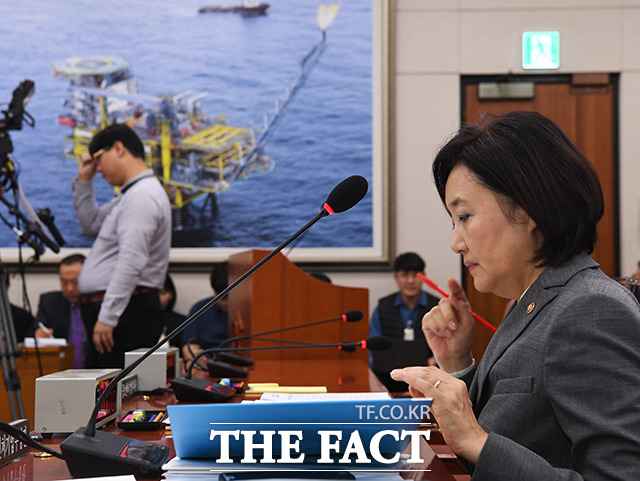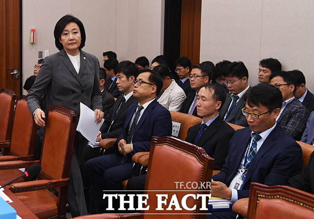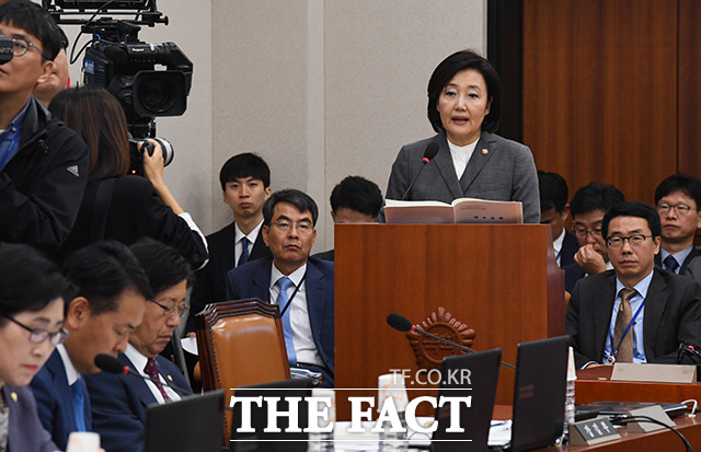 국회 산업통상자원중소벤처기업위원회의 중소벤처기업부에 대한 국정감사가 8일 오전 서울 여의도 국회에서 진행된 가운데 박영선 중소벤처기업부 장관이 환한 미소를 짓고 있다. / 국회=배정한 기자
