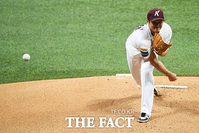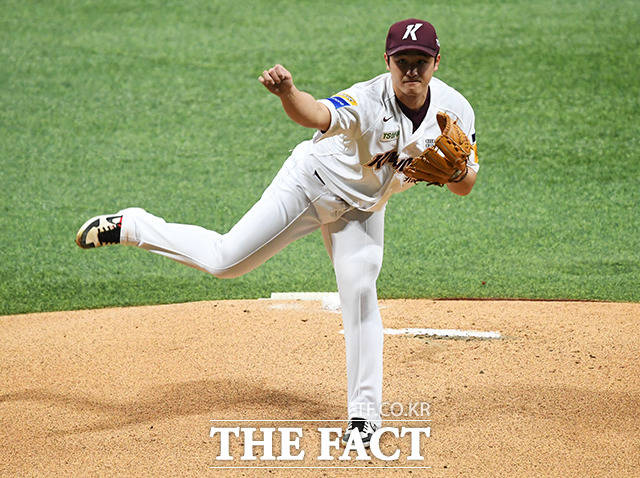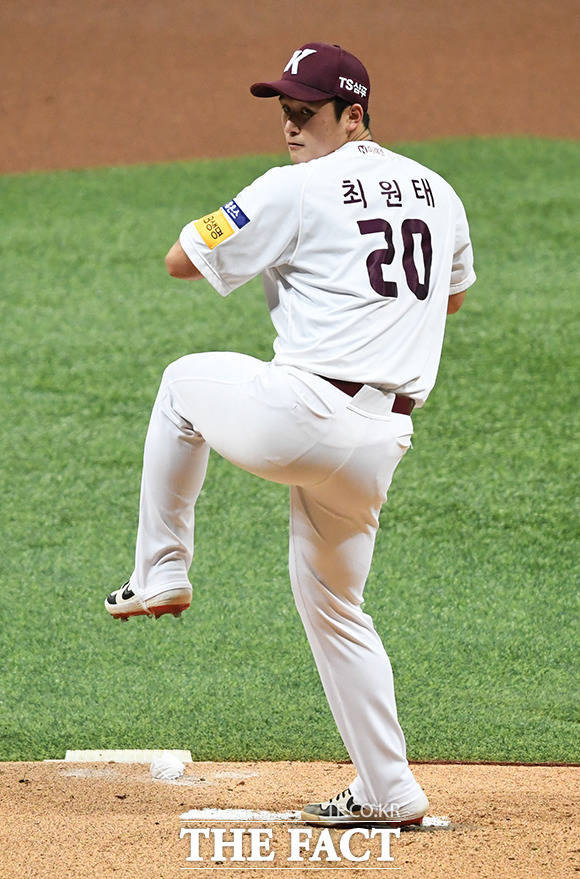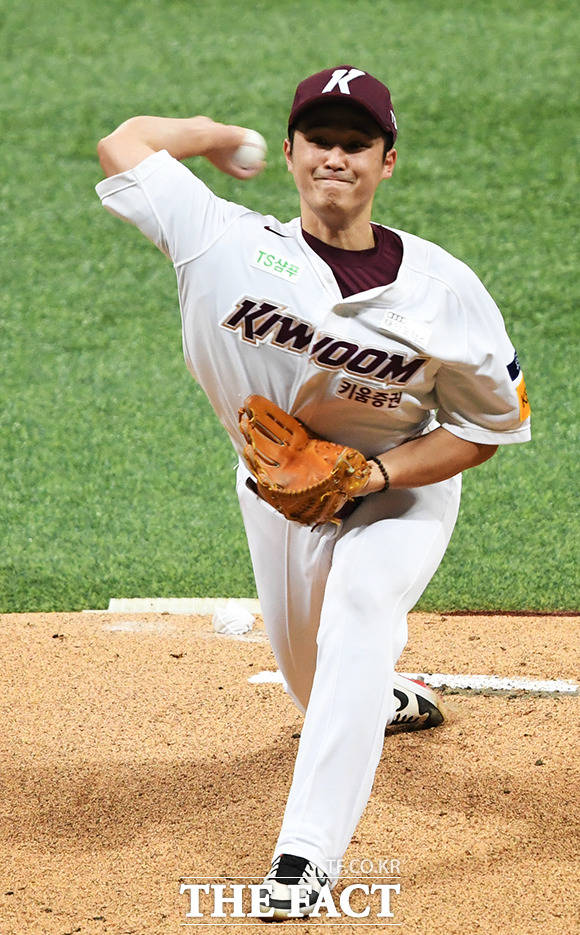 [더팩트ㅣ배정한 기자] 프로야구 2019 신한은행 마이카 KBO리그 한국시리즈 4차전 두산 베어스와 키움 히어로즈의 경기 26일 오후 서울 구로구 고척스카이돔에서 열렸다. 1회초 키움 선발투수 최원태가 역투를 하고 있다.