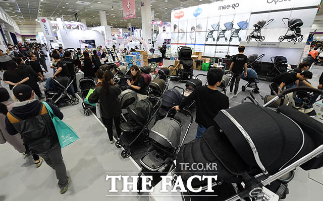 [더팩트ㅣ김세정 기자] '제29회 코베 베이비페어'가 31일 오후 서울 강남구 삼성동 코엑스 전시홀에서 열린 가운데 전시를 찾은 관람객들이 진열된 육아용품을 살펴보고 있다.