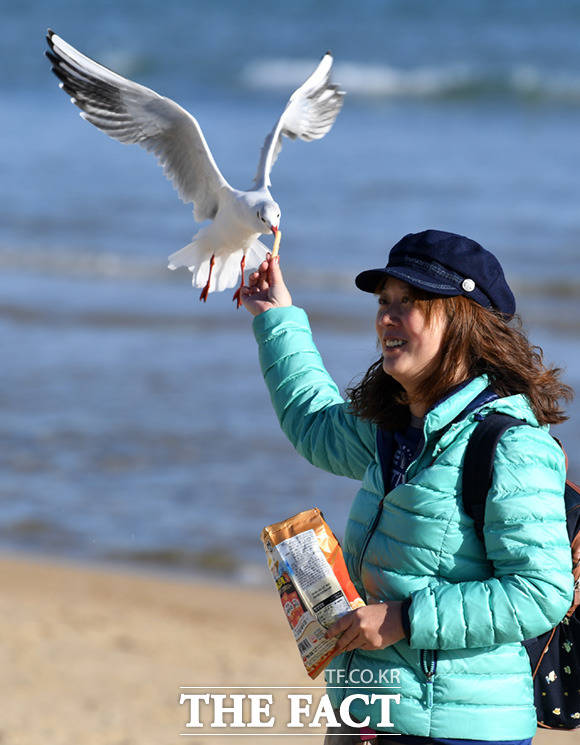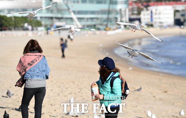 [더팩트ㅣ부산=임세준 기자] 부산 지역이 맑은 날씨를 보인 14일 오후 부산 해운대구 해운대해수욕장에서 시민들이 가을바다를 즐기며 즐거운 시간을 보내고 있다.