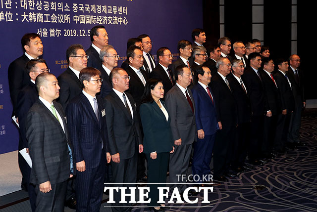 [더팩트ㅣ이덕인 기자] 대한상공회의소가 5일 오전 서울 중구 웨스틴조선호텔에서 '제2회 한·중 기업인 및 전직 정부 고위인사 대화' 행사를 연 가운데 한국측 위원장인 정세균 전 국회의장(왼쪽 여섯번째)과 중국측 쩡 페이옌 위원장(왼쪽 일곱번째)을 비롯한 내빈들이 기념촬영을 하고 있다.