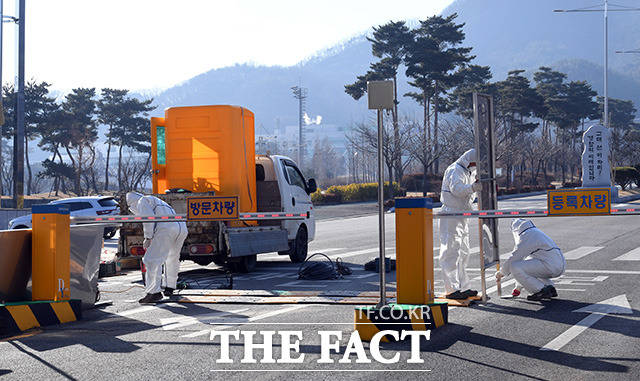 [더팩트ㅣ아산=임영무 기자] 중국 우한의 교민들의 임시생활거처로 충남 아산 경찰인재개발원이 정해진 가운데 30일 오전 충남 아산 온양동 경찰인재개발원에는 방역 장비가 설치되고 있다.