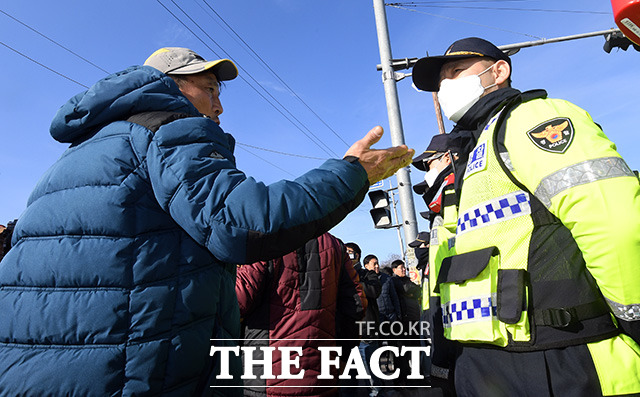 [TF포토] 경찰과 대치중인 아산 온양동 주민