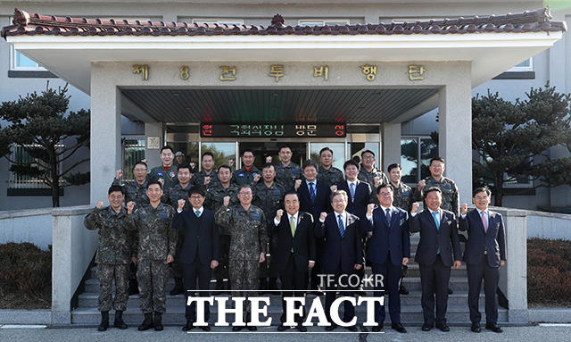 [더팩트ㅣ원주=국회사진취재단] 문희상 국회의장이 30일 오전 강원도 원주시 제8전투비행단을 방문해 부대원들과 기념촬영하고 있다.