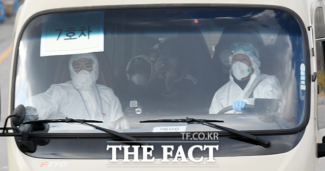 [더팩트ㅣ아산=임영무 기자] 신종 코로나 바이러스 감염증의 진원지로 알려진 중국 후베이성 우한에서 귀국한 교민 200여명을 태운 버스가 31일 오전 충남 아산 경찰인재개발원으로 들어가고 있다.