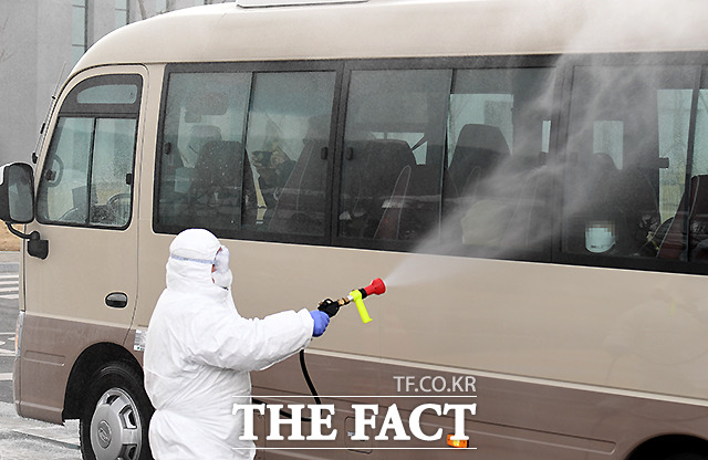 [더팩트ㅣ진천=이새롬 기자] 신종 코로나 바이러스 감염증의 진원지로 알려진 중국 후베이성 우한에서 귀국한 교민 150여명을 태운 버스가 31일 오후 충북 진천군 국가공무원인재개발원으로 들어서고 있다.