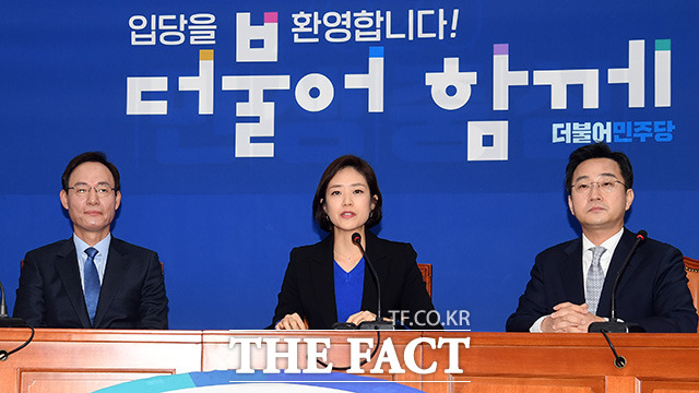 [더팩트ㅣ국회=임영무 기자] 고민정 전 청와대 대변인(가운데)이 2일 오후 서울 여의도 국회 더불어민주당 당대표실에서 기자회견을 갖고 있다.darkroom@tf.co.kr사진영상기획부 photo@tf.co.kr