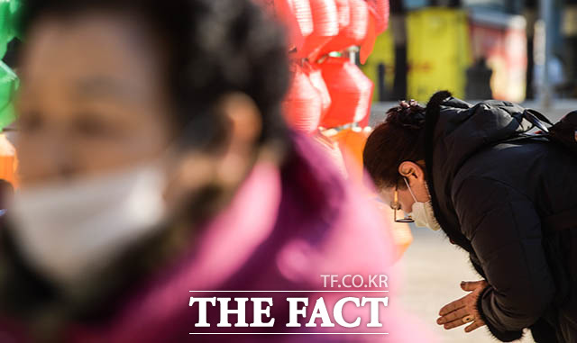 [더팩트ㅣ김세정 기자] 절기상 입춘인 4일 오전 입춘기도를 위해 서울 종로구 조계사를 찾은 시민들이 신종 코로나 바이러스 감염증에 대한 우려로 마스크를 착용한 채 기도하고 있다.