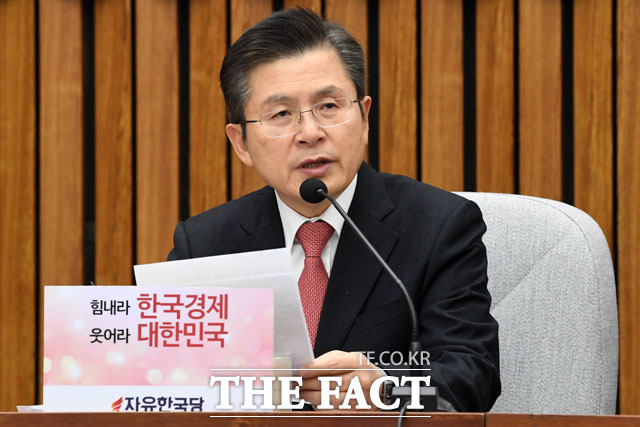[더팩트 | 국회=남윤호 기자] 황교안 자유한국당 대표가 5일 오전 서울 여의도 국회에서 열린 대표 주요당직자회의에 참석해 모두발언을 하고 있다.
