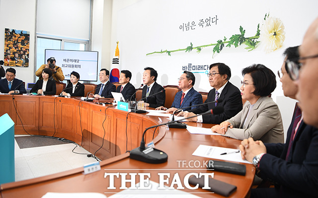 [더팩트ㅣ국회=배정한 기자] 바른미래당 최고위원회의가 5일 오전 서울 여의도 국회에서 열린 가운데 손학규 대표(오른쪽)가 발언을 하고 있다.