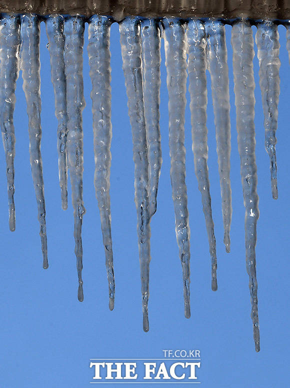 [TF사진관] '최강 한파에 주렁 주렁 맺힌 고드름'