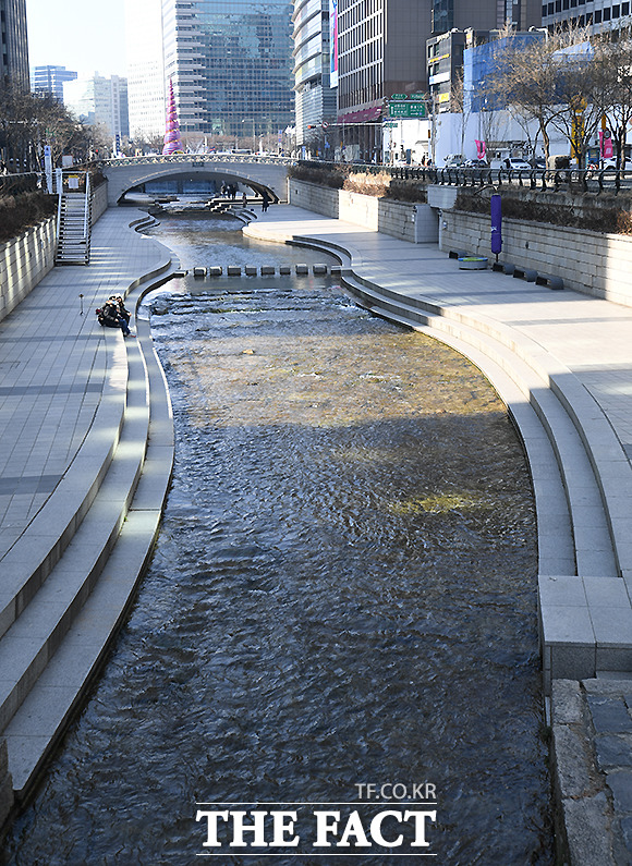 [더팩트ㅣ이새롬 기자] 신종 코로나바이러스 감염증 확산 우려가 지속되는 8일 서울 청계천이 한산한 모습을 보이고 있다.