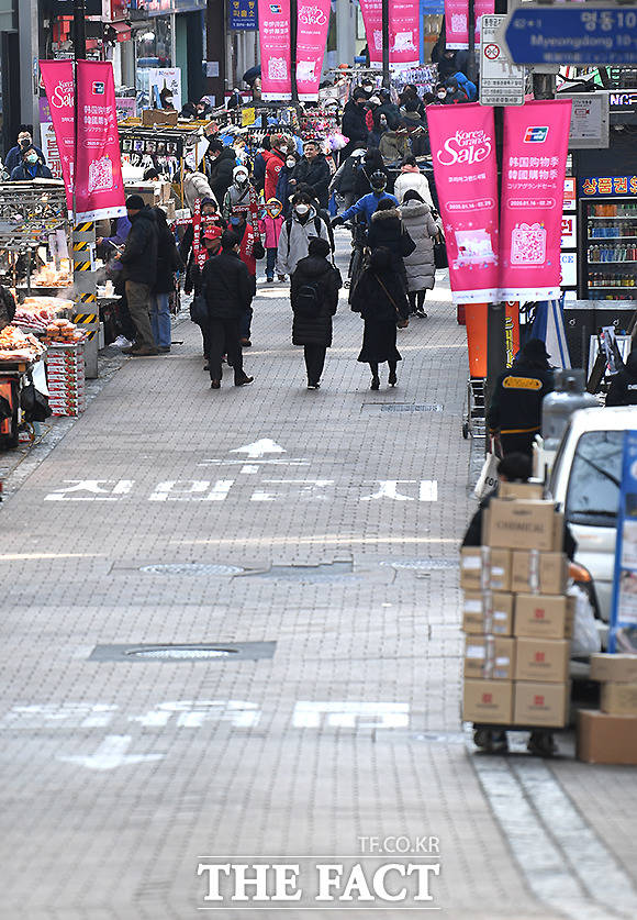 [TF포토] 신종 코로나 여파로 썰렁해진 명동