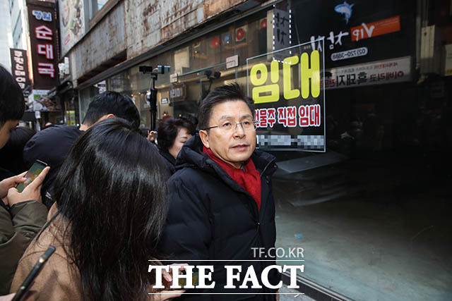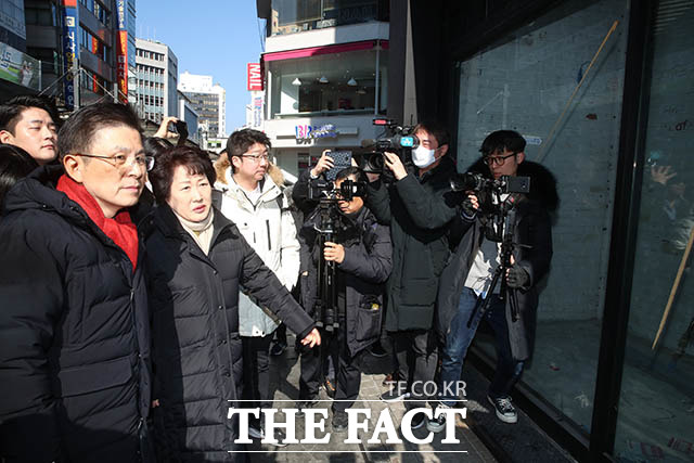 젊음의 거리에 비어있는 상가를 둘러보는 황 대표