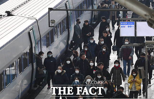 [더팩트ㅣ이동률 기자] 신종 코로나바이러스 감염증의 확산 우려가 지속되는 10일 오전 서울 용산구 서울역을 찾은 시민들이 마스크를 쓰고 발걸음을 재촉하고 있다.