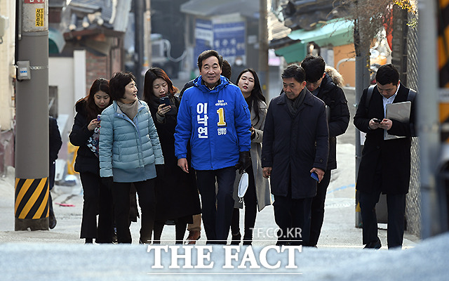 [더팩트ㅣ이새롬 기자] 4.15 총선 서울 종로에 출마하는 이낙연 전 국무총리가 10일 서울 종로구민회관 일대 골목을 둘러보고 있다.