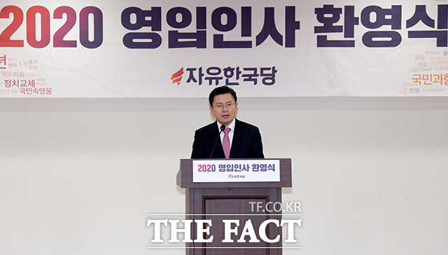 [더팩트|국회=이선화 기자] 황교안 자유한국당 대표가 11일 오전 서울 여의도 국회 의원회관에서 열린 2020 영입인사 환영식에 참석해 환영사를 하고 있다.