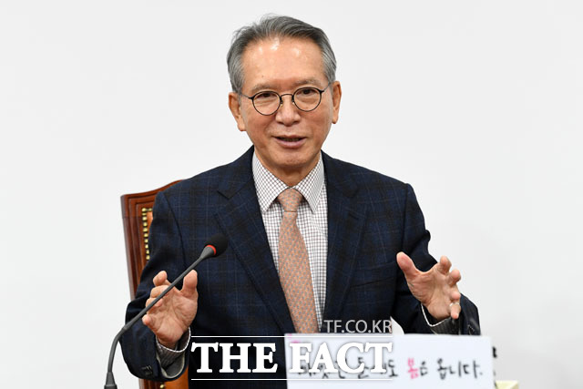 [더팩트 | 국회=남윤호 기자] 자유한국당 4·15 총선 후보로 영입된 송한섭 전 서울서부지방검찰청 검사가 12일 오전 서울 여의도 국회에서 열린 기자회견에 참석해 인사말을 하고 있다.