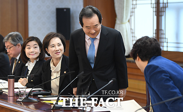 [더팩트ㅣ이새롬 기자] 정세균 국무총리가 12일 오전 서울 종로구 정부서울청사에서 열린 제 10차 양성평등위원회에 참석하며 위원들과 인사를 나누고 있다. saeromli@tf.co.kr 사진부 photo@tf.co.kr
