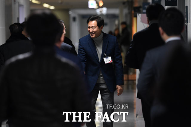 [더팩트 | 국회=남윤호 기자] 서울 광진을 예비후보인 오세훈 전 서울시장이 12일 오전 서울 여의도 국회 의원회관에서 자유한국당 공천관리위원회 면접장으로 향하며 예비후보자들과 인사를 나누고 있다.