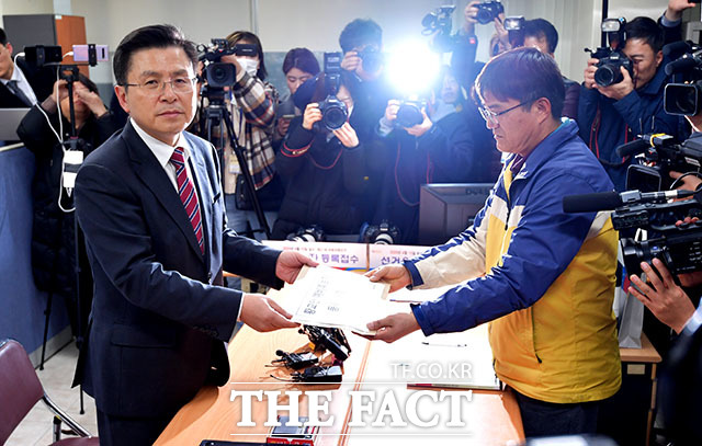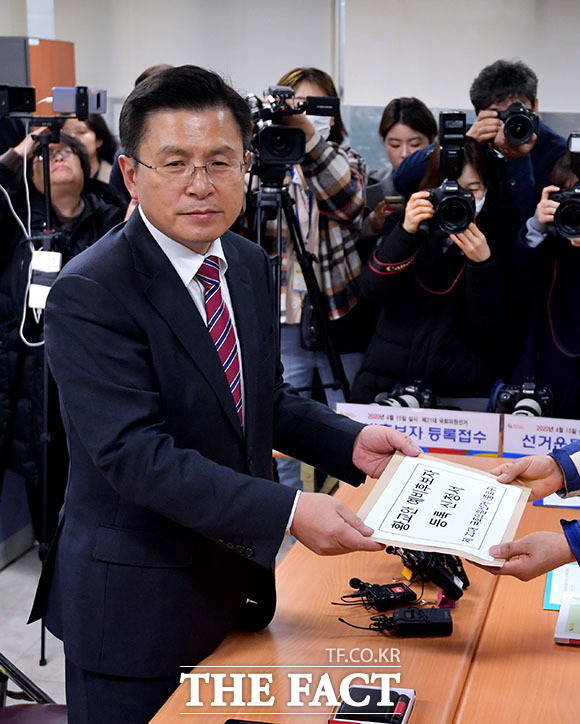 [더팩트ㅣ이덕인 기자] 21대 총선에서 서울 종로 출마를 선언한 황교안 자유한국당 대표(왼쪽)가 12일 오후 종로구선거관리위원회에 방문해 예비후보 등록을 하고 있다.