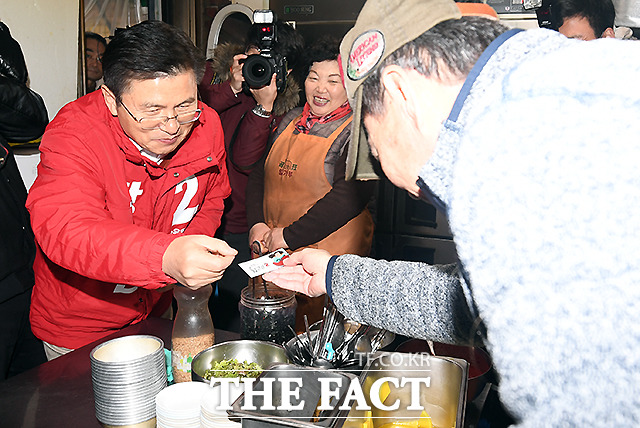 [더팩트ㅣ이새롬 기자] 4.15 총선 종로에 출마하는 황교안 자유한국당 대표가 13일 오후 서울 종로구 창신동 일대 시장을 찾아 시민들에게 명함을 나눠주고 있다.