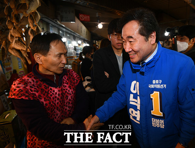 [더팩트ㅣ이동률 기자] 더불어민주당 후보로 4.15 총선 종로에 출마하는 이낙연 전 국무총리가 15일 오후 서울 종로구 광장시장을 찾아 상인들과 인사를 나누고 있다.