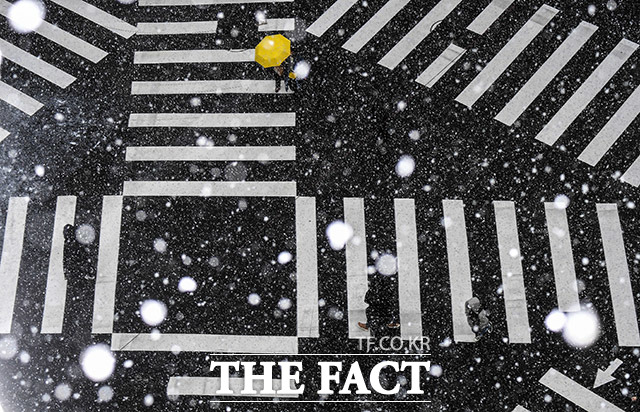 [더팩트ㅣ이동률 기자] 전국 대부분 지역에 눈이 내린 17일 오전 서울 중구 시청역 인근의 직장인들이 발걸음을 재촉하고 있다.