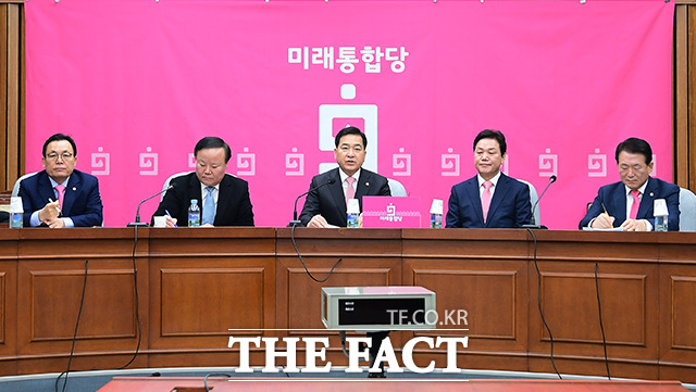 [더팩트|국회=이선화 기자] 심재철 미래통합당 원내대표(가운데)가 18일 오전 서울 여의도 국회에서 열린 원내대책회의에 참석해 모두발언을 하고 있다.