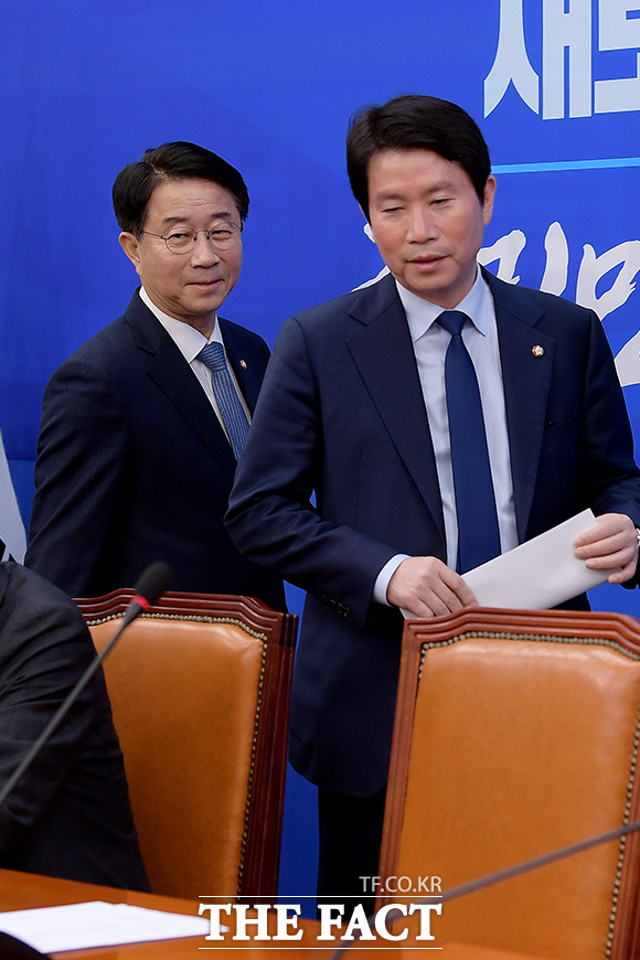 [더팩트|국회=이선화 기자] 조정식 정책위의장(왼쪽)과 이인영 더불어민주당 원내대표가 20일 오전 서울 여의도 국회에서 열린 정책조정회의에 참석하고 있다.