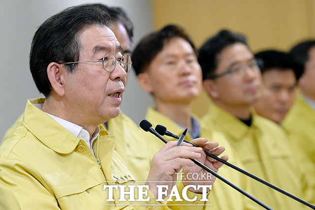 [더팩트|이선화 기자] 박원순 서울시장이 24일 오전 서울 중구 서울시청에서 '코로나19 위기경보 심각 단계 격상에 따른 서울시 선제적 대응방안 발표 기자회견'을 열고 방안을 발표하고 있다.seonflower@tf.co.kr사진영상기획부 photo@tf.co.kr