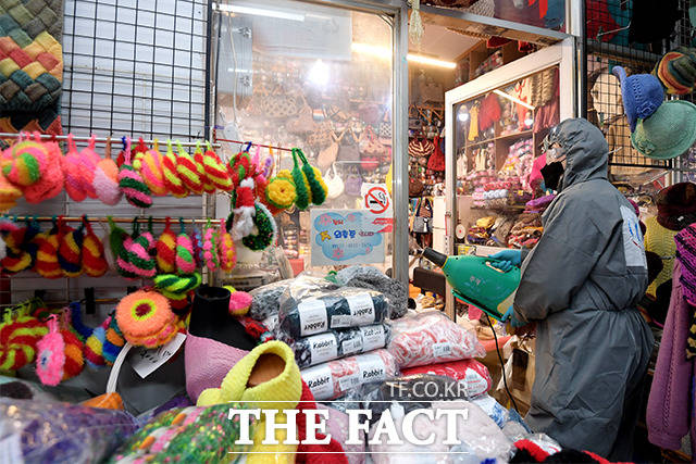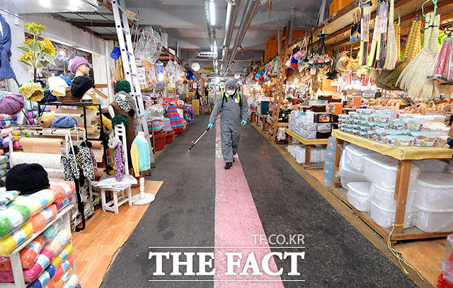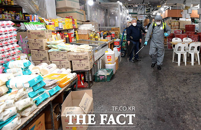 [TF사진관] '예방만이 살 길이다', 방역하는 전통시장
