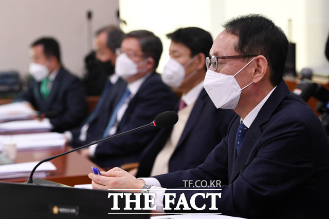 [더팩트 | 국회=남윤호 기자] 김도읍 미래통합당 의원이 26일 오전 서울 여의도 국회에서 열린 법제사법위원회 전체회의에 출석해 박능후 보건복지부 장관의 답변을 듣고 있다.