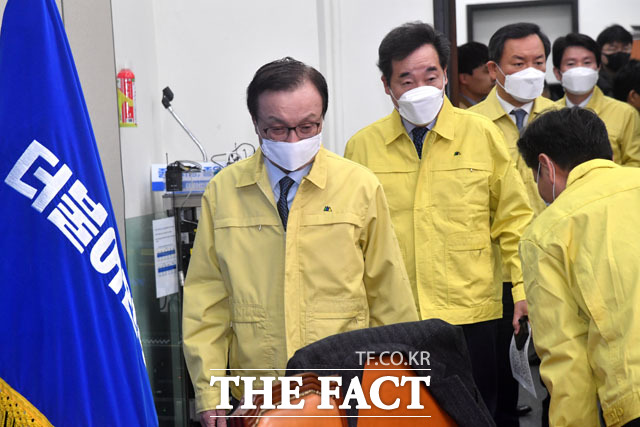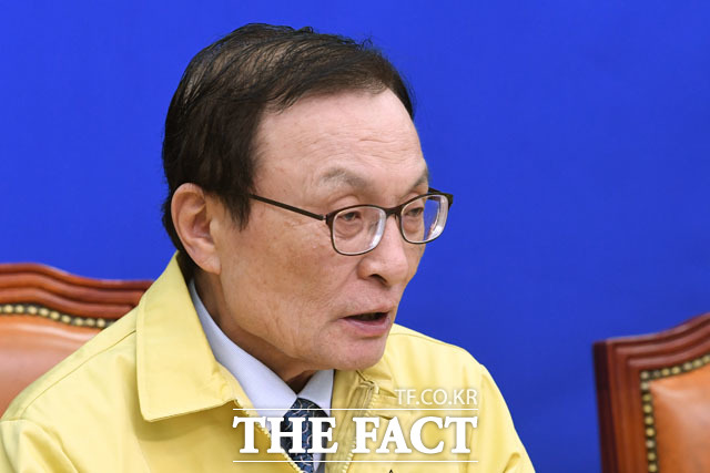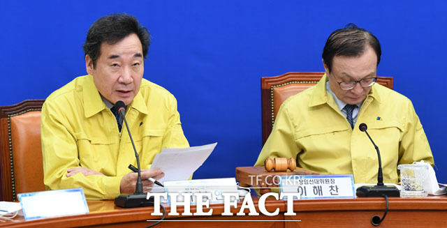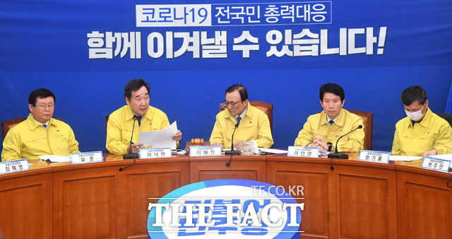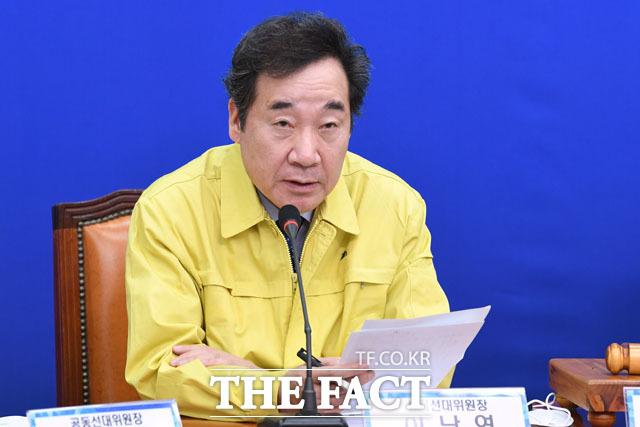 [더팩트 | 국회=남윤호 기자] 이해찬 더불어민주당 상임선대위원장(오른쪽에서 세 번째)이 28일 오전 서울 여의도 국회에서 열린 제2차 선거대책위원회 회의에 참석해 모두발언을 하고 있다.
