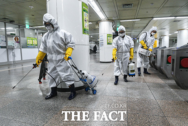 서울교통공사는 기존 경계 단계 시 주 1회 실시하던 지하철 역사 내부 방역을 주 2회로 늘려 현재 대응할 수 있는 최고 수준까지 방역을 강화해 실시 중이다.