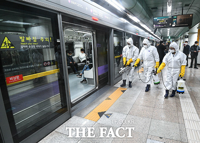 [TF포토] '지하철 승강장까지 방역 완료'