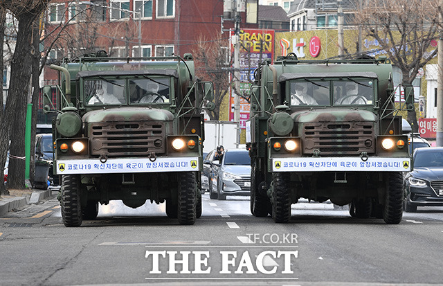 [TF포토] 방역 현장으로 이동하는 군 제독차량