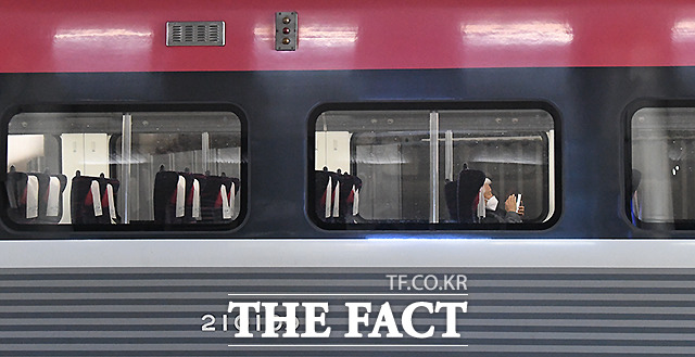 [더팩트ㅣ이새롬 기자] 4일 서울역 승강장에 정차한 한 KTX 객실 안이 코로나19 여파로 비어 있다.