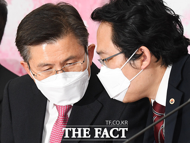[더팩트ㅣ국회=배정한 기자] 미래통합당 코로나19 긴급경제대책회의가 13일 오전 서울 여의도 국회에서 열린 가운데 황교안 대표(왼쪽)와 최대집 대한의사협회 회장이 대화를 하고 있다.