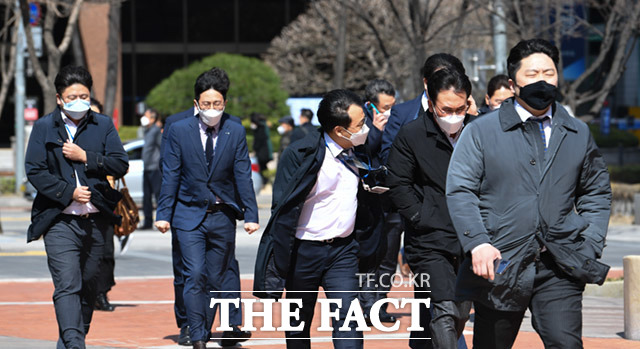 [더팩트ㅣ임세준 기자] 전국적으로 강풍경보가 내려진 19일 오전 서울 영등포구 여의도 일대에서 직장인들이 바람을 뚫고 걸음을 옮기고 있다.