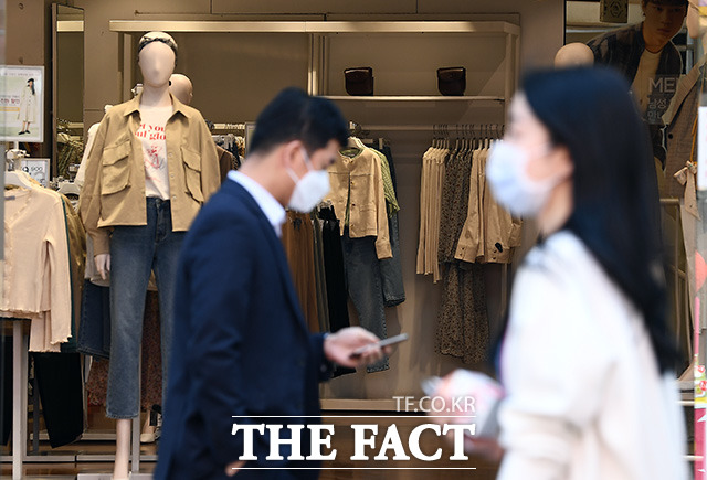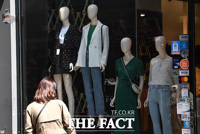 [더팩트ㅣ이동률 기자] 완연한 봄날씨를 보인 30일 오후 서울 중구 명동역 인근의 한 의류매장에서 직원이 봄옷을 진열하고 있다.