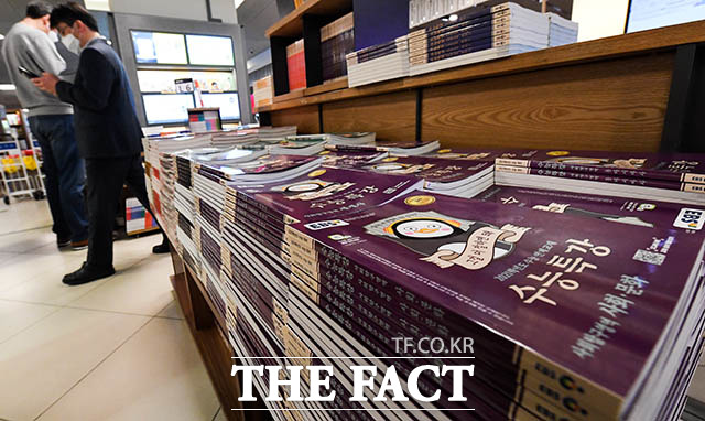 [더팩트ㅣ김세정 기자] 코로나19의 확산으로 정부가 대학수학능력시험(수능)과 수시, 정시 모집 등 대학 입시 일정을 미루기로 한 가운데 1일 서울 종로구 교보문고 광화문점에 수능 수험 서적이 쌓여 있다.